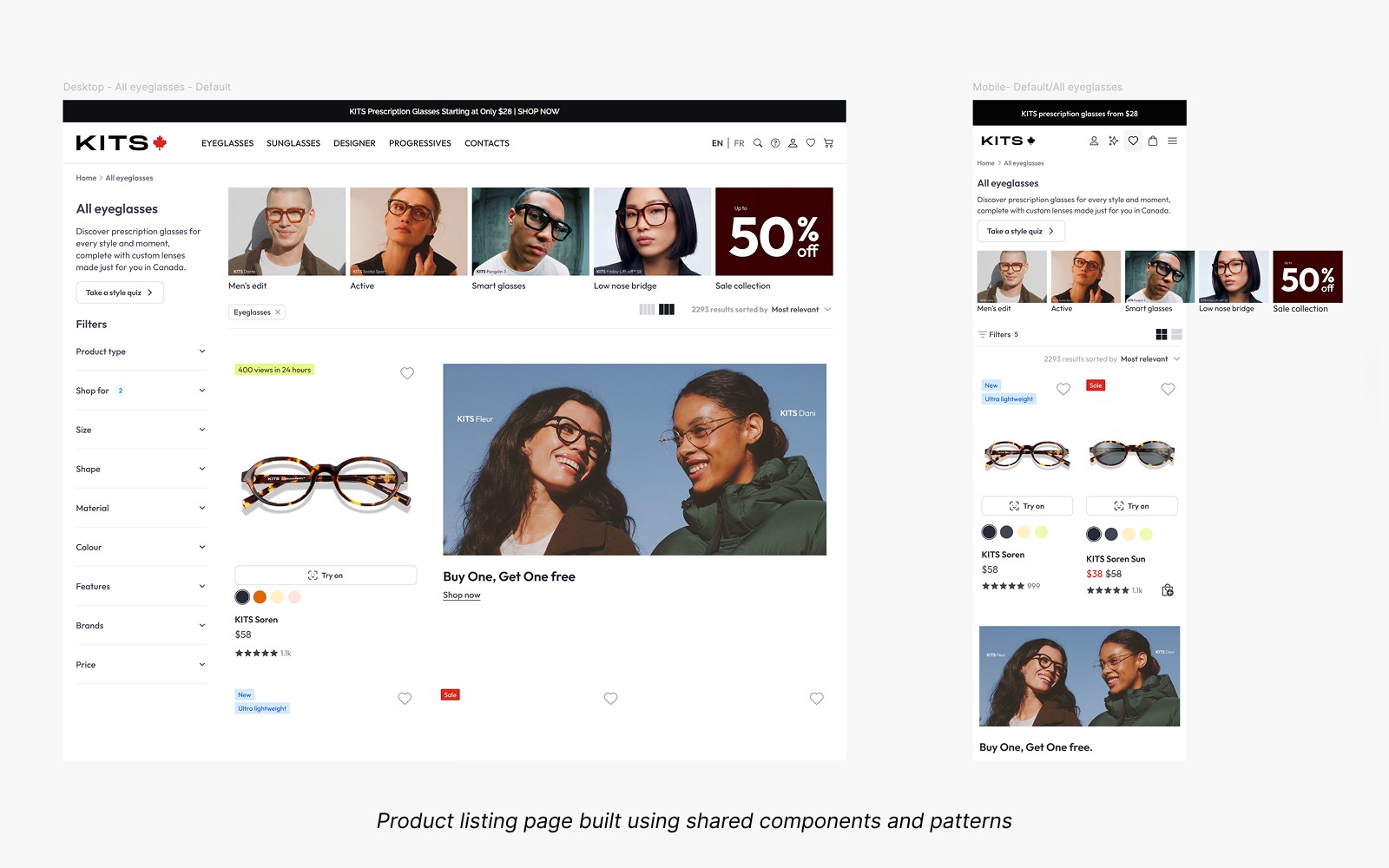 Built and scaled KITS’ design system from scratch, then transitioned to a third-party foundation to support a growing volume of product and campaign work. Now used daily by design and engineering to ship faster and more consistently.
